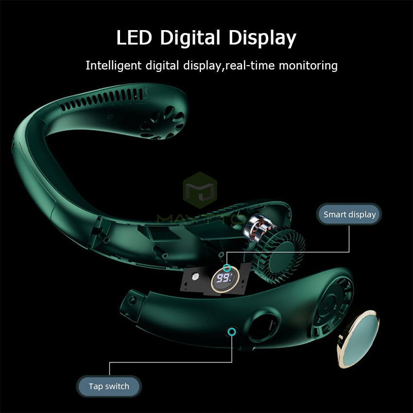 MAYTTO rechargeable Hanging Neck Fan LED Digital Display Portable Cooler Fan