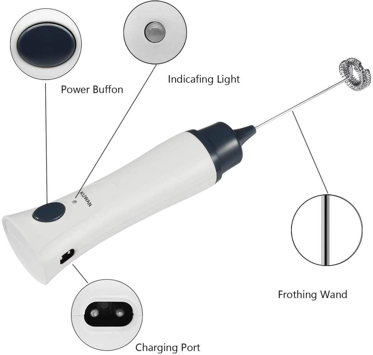Rechargeable Eggbeater Handheld Stainless Milk Frother Foamer Blender Coffee Mixer with Charging CableSleek and stylish designIt is with a wide base to stand upright.
