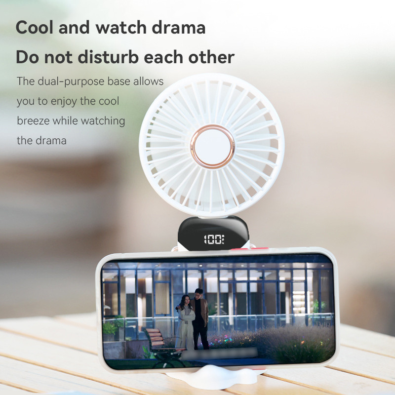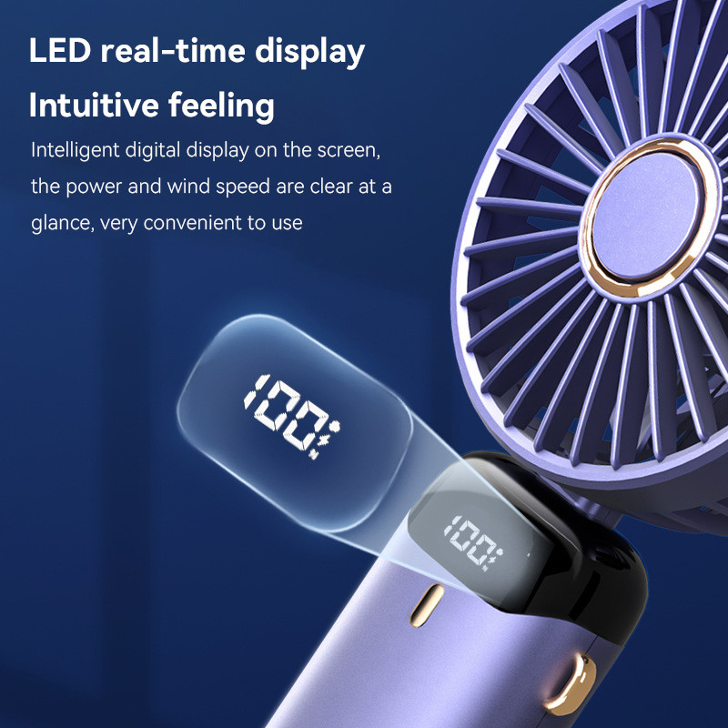 Product details of T&W Portable Handheld Fan USB Rechargeable with Smart Led Display Mini Fan with Base 5000MAh Outdoor