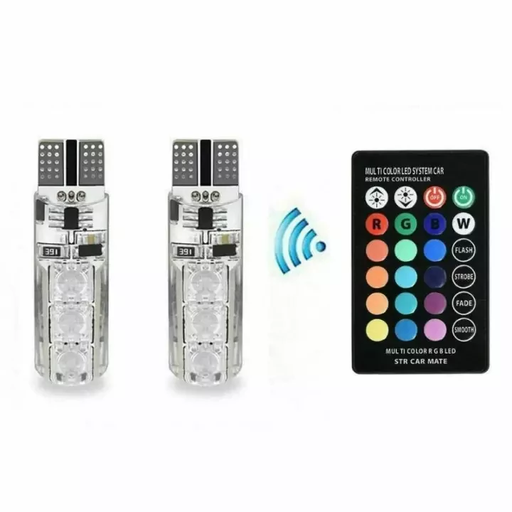 Product details of Waterproof RGB LED Multi-Color Bright Parking Sports Light for Motorcycle, Car- 2pcs 12V T10 LED 5050SMD